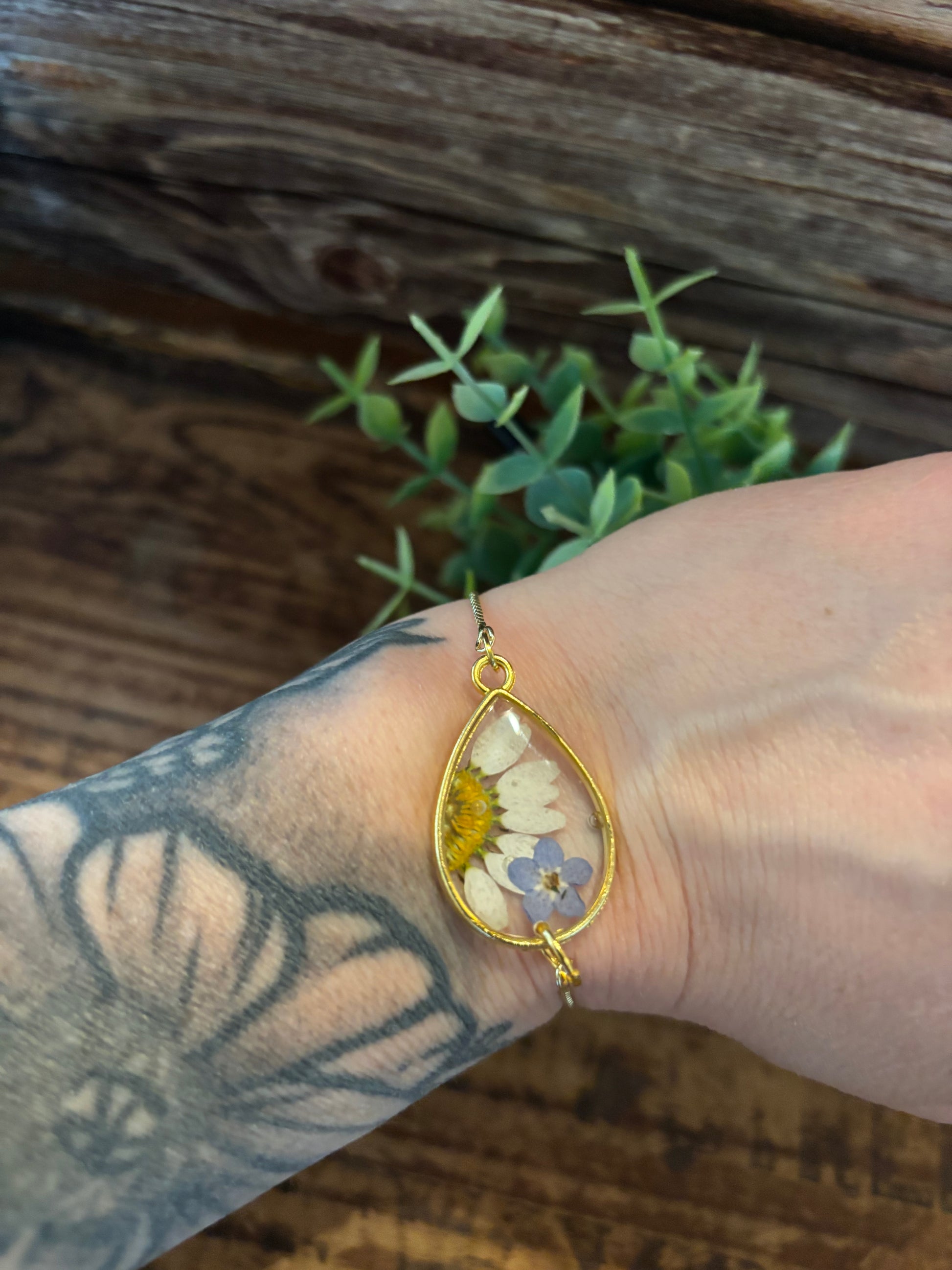 Handcrafted, nature inspired Daisy slider bracelet