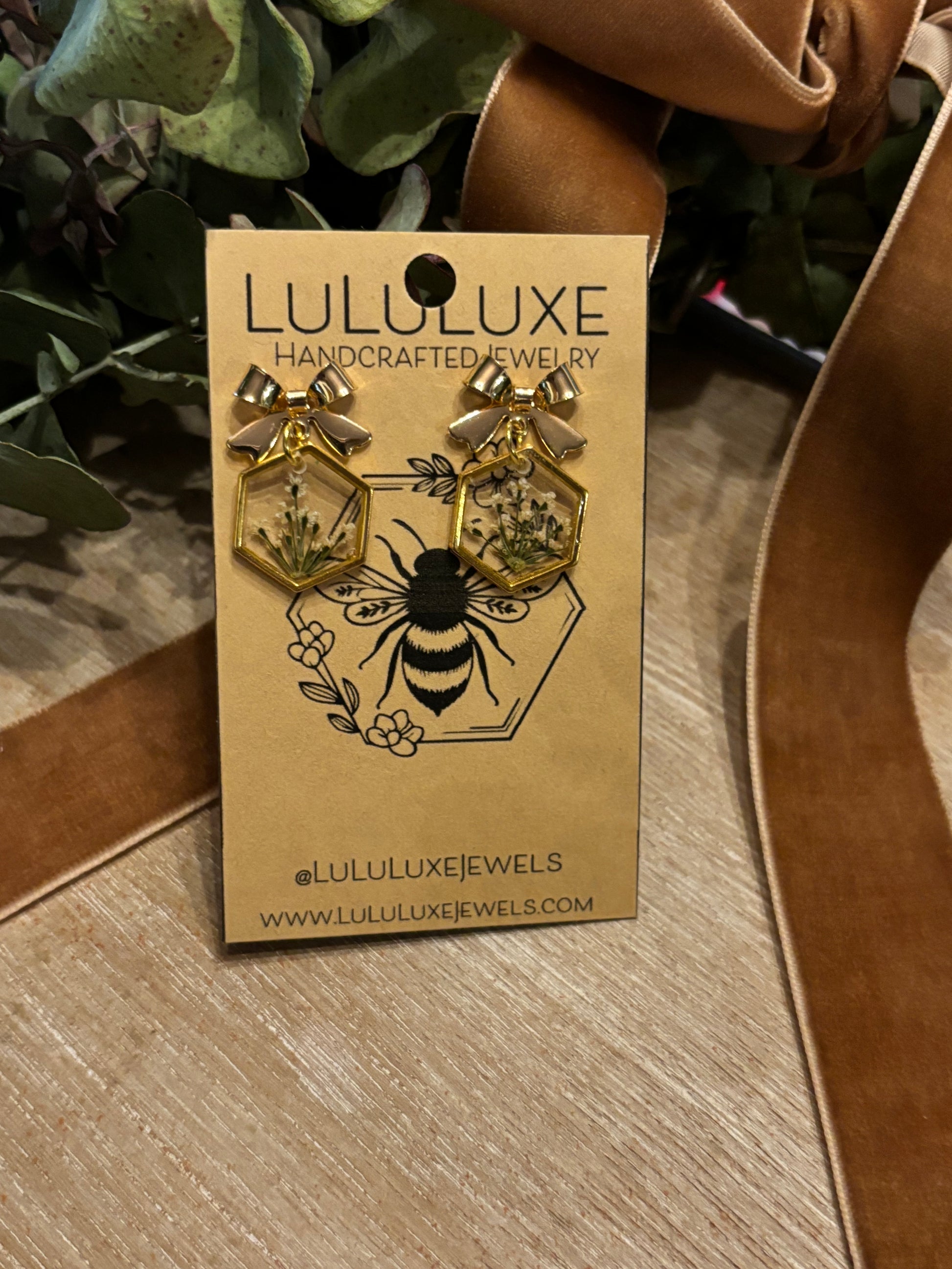 Hexagon dangles adorned with a cute little bow post