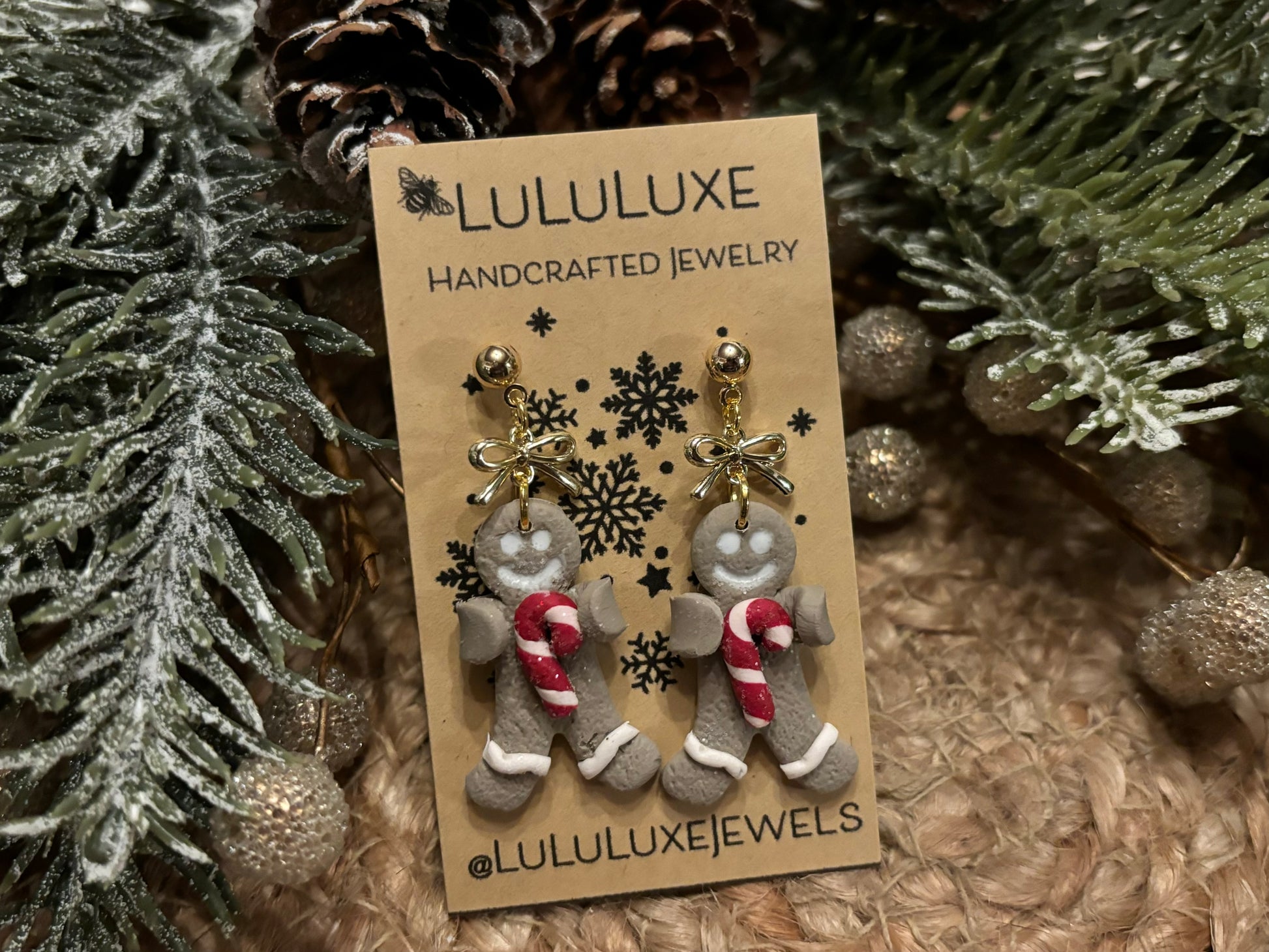 Introducing the Dancing Gingerbread earrings - a charming holiday accessory that brings festive cheer to any outfit. These cute earrings feature a gingerbread man dancing while holding a candy cane, adding a touch of whimsy and playfulness to your look. Crafted with attention to detail, they are the perfect choice for spreading holiday cheer.
